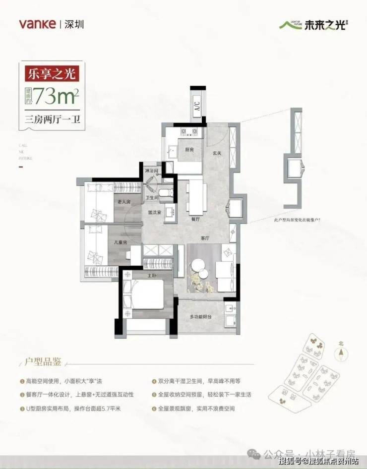 万科未来之光家园,项目共分4个地块开发,占地面积约7.4万㎡,总建筑面积约21.5万㎡,容积率2.91,共由23栋10-23层高住宅组成,配建有1所幼儿园,总规划2466户(商品房1699户,公租房257户,自持租赁住房510户),规划停车位2060个(占比1:0.83)。