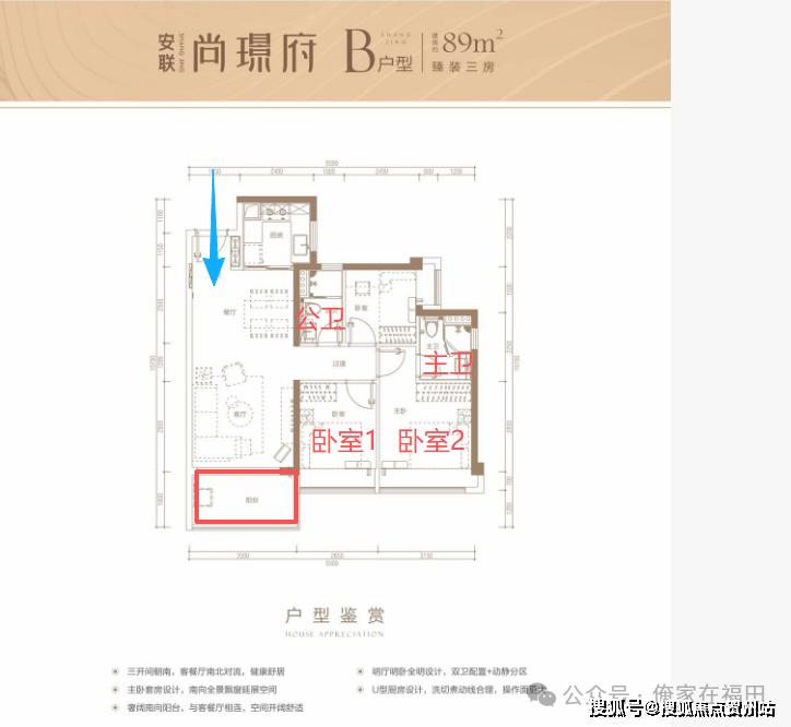 【户型89平米三房两卫 三开间朝南 客厅带阳台】工抵房340万 优惠后的价格,单价340/89=3.8w