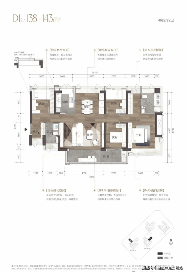 【产品面积】建面约108㎡/109㎡/138㎡~143m²海幕纯四房