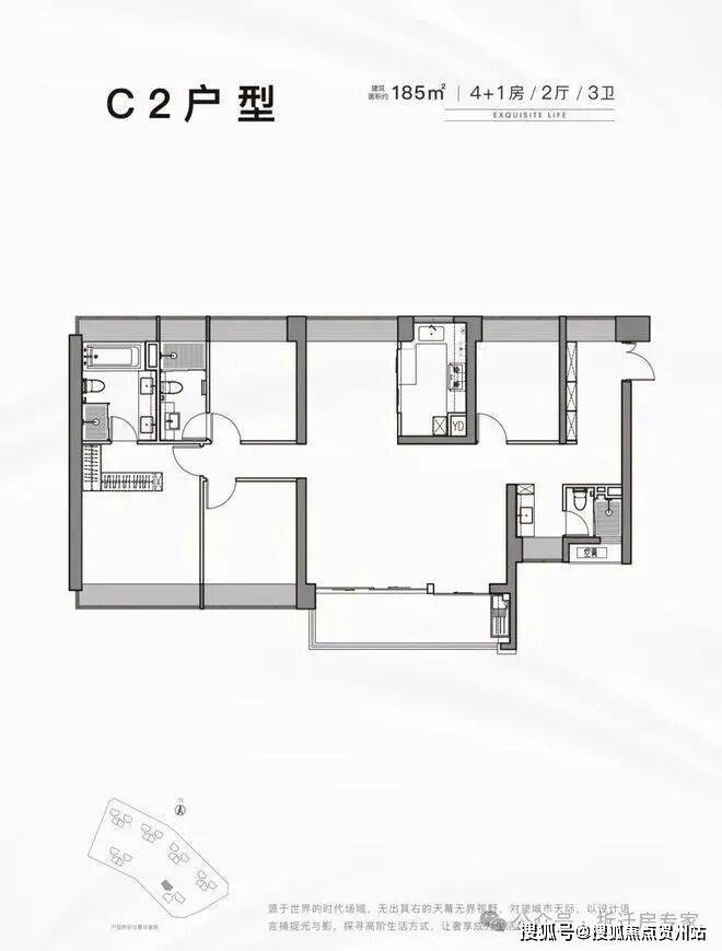 177平:5房2厅3卫,西南朝向,使用率77.43%(不包含赠送)
