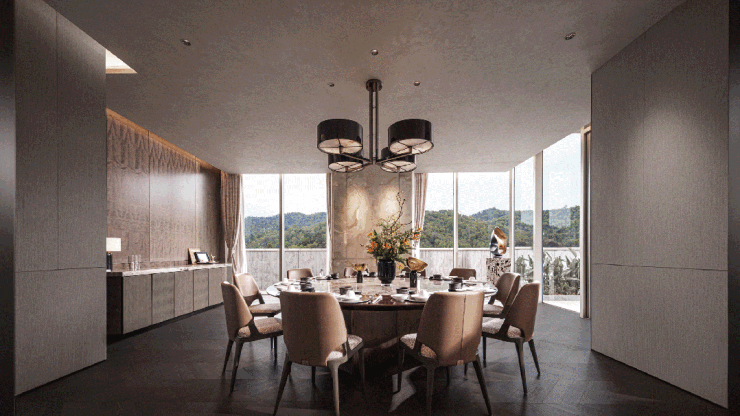 一推门,穿梭在被全面屏包裹住的会客厅, 尊享凤凰山无遮挡的独家视野 ,还有什么设计能比这更好的安放你的情绪呢。