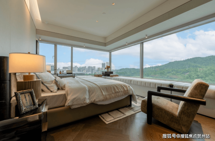 还有 超27㎡“行政级”主卧套房 ,奢配市场罕见的270°环幕转角大飘窗,一进房门便是颠覆性的景观叙事,同时 “场景化主卧” ,更是集起居、衣帽、自由、主卫、休闲五大功能于一体,让主卧成为真正意义上的主人精致的私人领地。