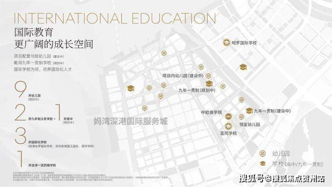 学校:楼下配备18班幼儿园,隔壁规划1所九年义务制学校;荟同,中欧等国际教育资源