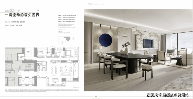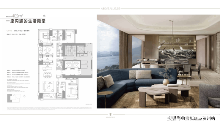 公寓主力户型为303㎡、326㎡、404㎡、572㎡等大平层,最大户型达1000㎡