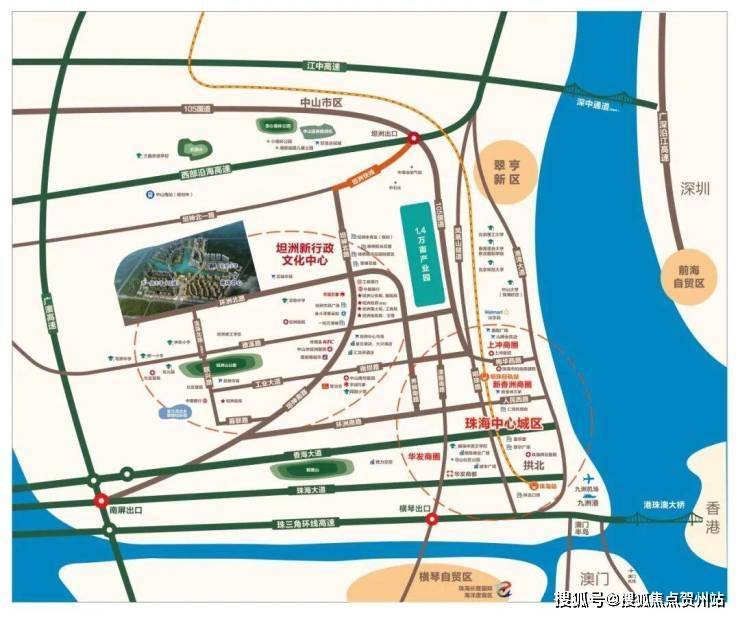 首先,项目位于中山城市副中心南部新城(规划中,来源:中山发布),靠近坦洲新行政中心,与珠海密切相连,发展潜力“左右逢迎”。