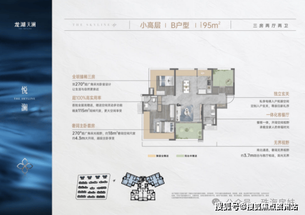 龙湖天澜,作为湖心新城首个新规后洋房社区,打造建面约85-143㎡奢境会所洋房,实用率超100%,刷新珠海户型标杆。