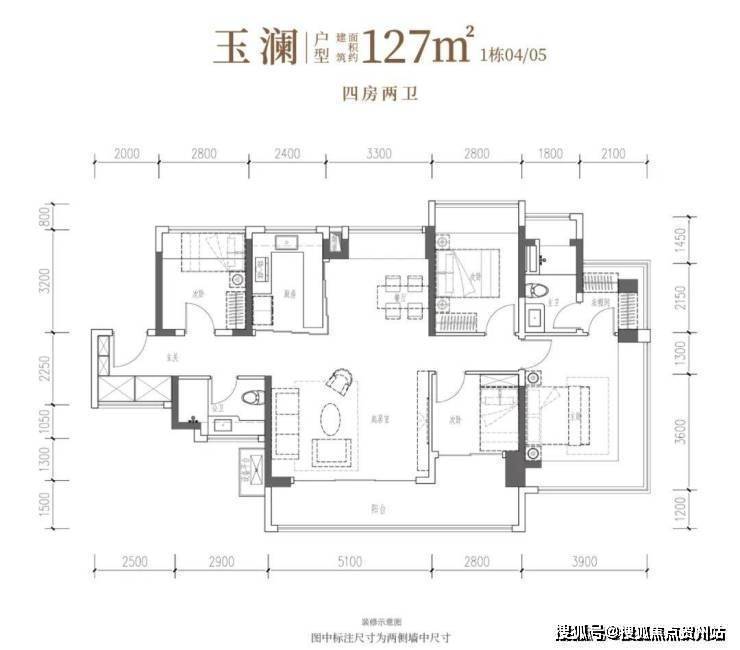 建面约127㎡4房2卫