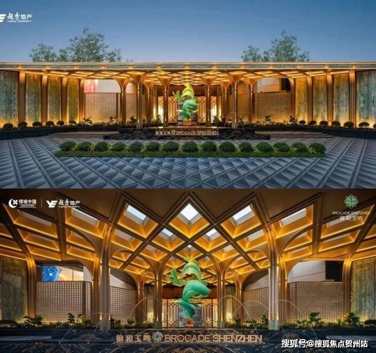 近51米,维多利亚绿宝石墙面,20根7米高香槟金立柱,绿城这次还是有点东西