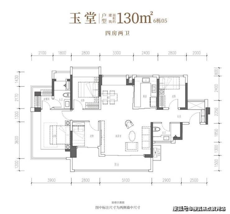 建面约130㎡4房2卫