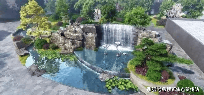 四重水景:提取凤凰山的形态纹理将自然山林元素与现代都市生活有机结合,在有限的面积之中,还原无限的自然山水之趣。