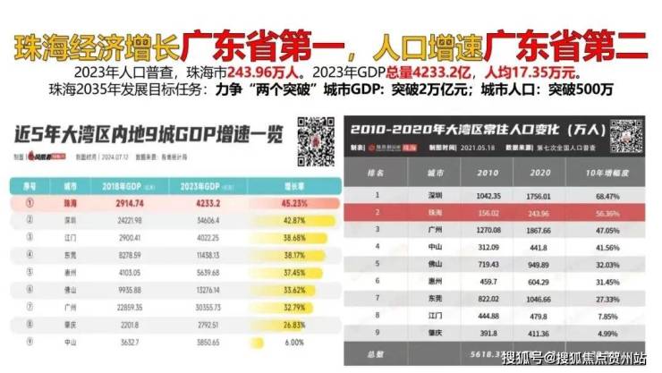 • 珠海:与广深同一梯度核心城市,经济人口发展领跑大湾区,作为黄金内湾上关键一环,脉链港澳的第一站,全国唯一与港澳陆路相连,尽享时代发展利好;珠澳深度一体化、香港和大陆前所未有地深度融合,珠海作为与全国唯一与港澳陆路桥相连的大陆城市,最先、最全享受利好。拱北坐拥发展桥头堡,坐拥口岸、快速接驳港珠澳大桥