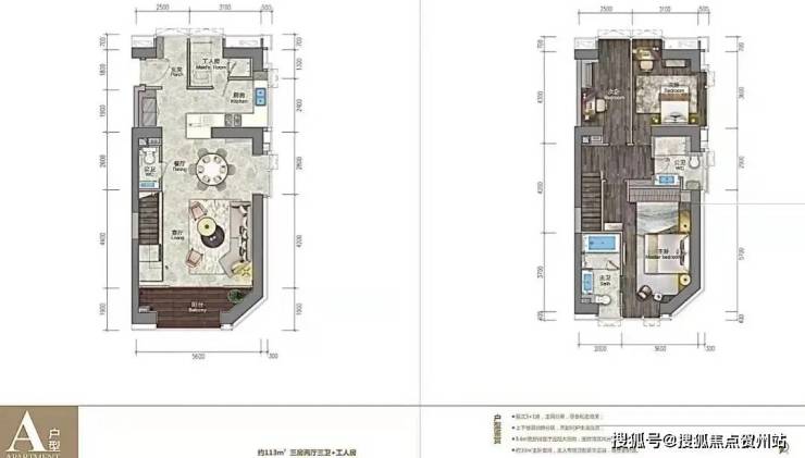 113㎡复式三房两厅三卫+工人房