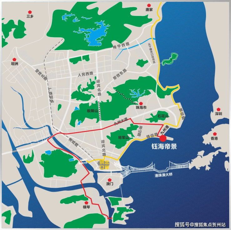 项目紧邻港珠澳大桥,快速通达澳门、香港。毗邻城轨珠海站,转瞬即达中山、广州、佛山等城市,广澳高速、广珠西线高速通达珠三角半小时生活圈。