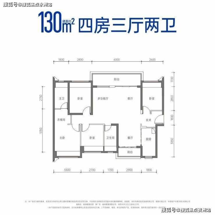 建面约130㎡四房三厅两卫