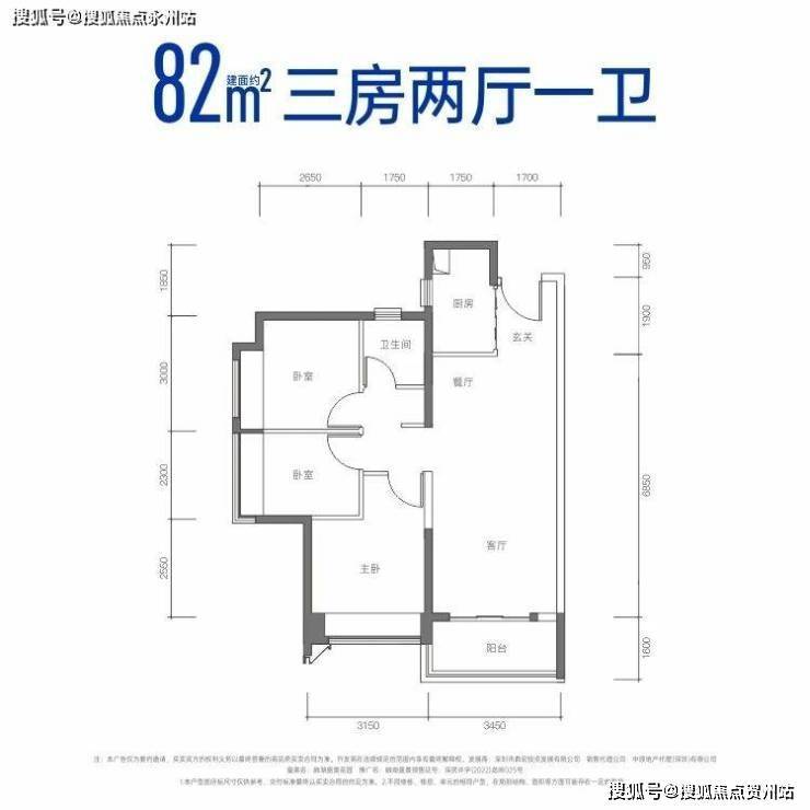 建面约82㎡三房两厅一卫