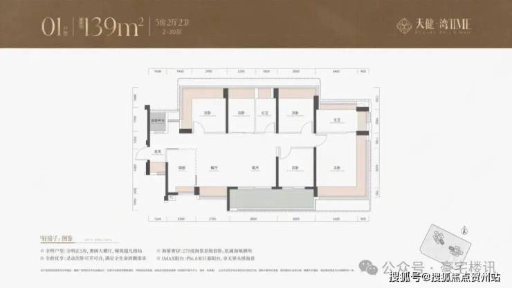 139平4房户型,同样以朝南、西南朝向为主,能够享受良好的采光和海景、山景资源。