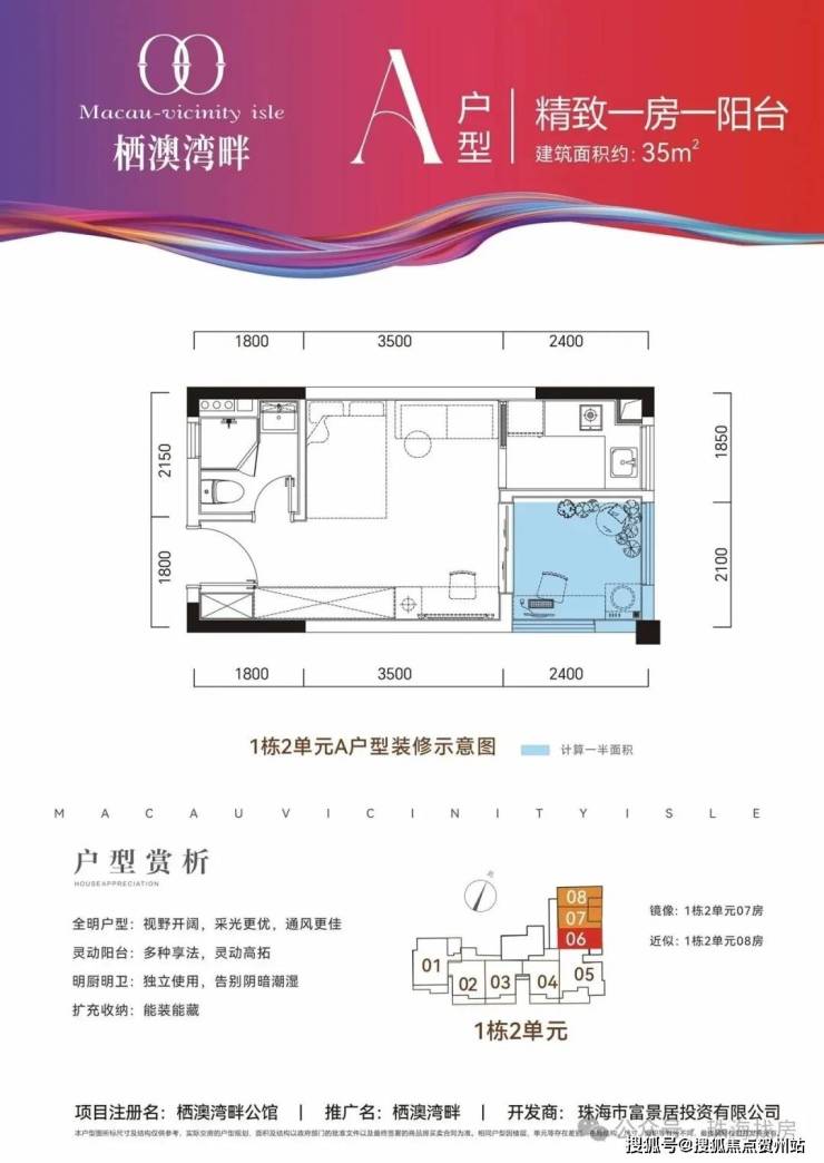 珠海·拱北口岸新住宅·栖澳湾畔·精装小户型纯住宅·35平·49平·64平·74平·青茂关口旁 步行仅8分钟!步行通关珠澳同城。💯本项目为新建住宅小户型,地段好装修新,租金比二手房要高一些,估算年回报率约4%,差不多能抵月供了。