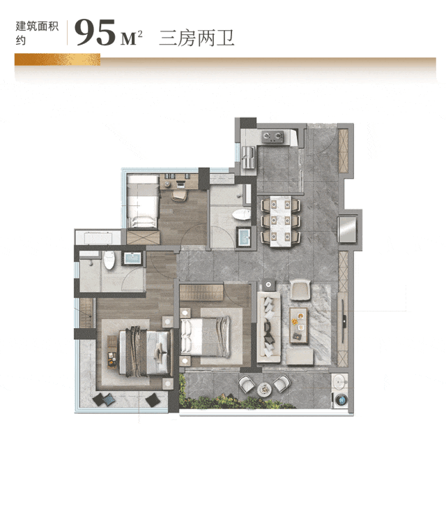 3个次卧既能满足多孩家庭需求,又能用作兴趣间、书房等,随家庭需求而变化,使用灵活。