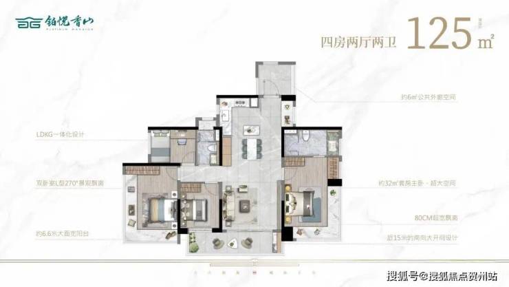 入户前留有玄关空间,LDKG一体化设计,主卧和次卧均配置了市面少有的L型270°转角飘窗,增加了生活空间的采光面和空间感。建面约152㎡5房户型,更是拉满了居住尺度。