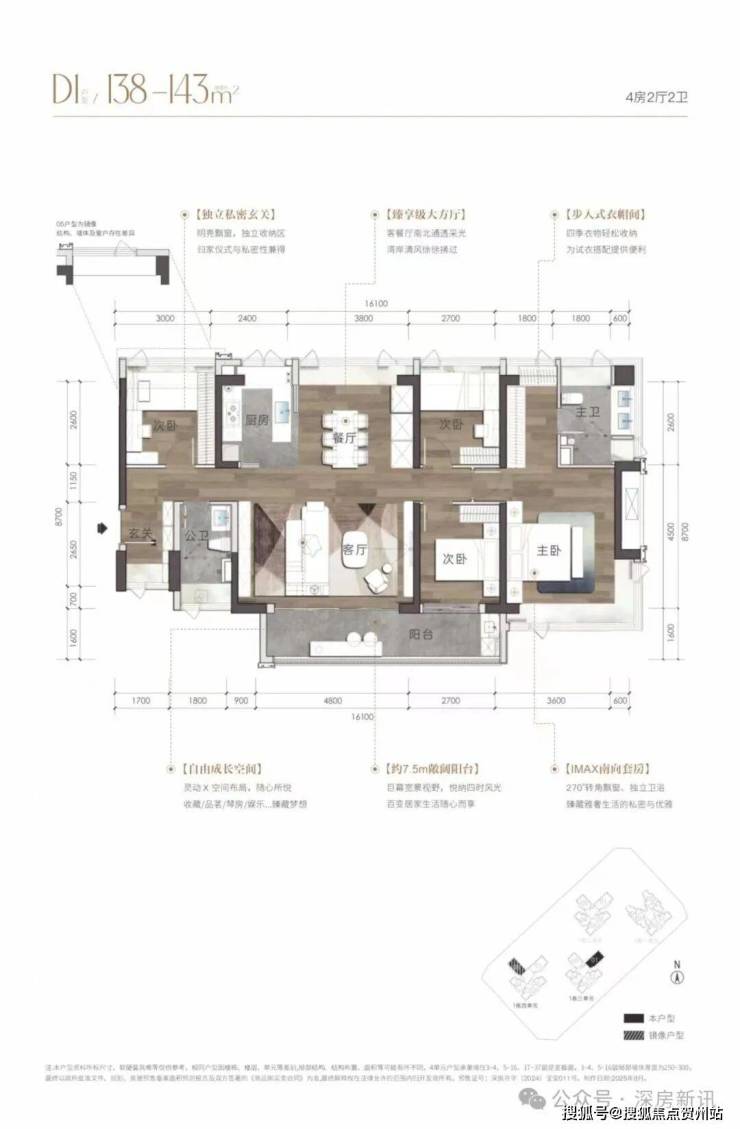 中铁阅臻府由4座31/37层高的住宅楼+1座3层高的幼儿园组成(1-1/1-2/1-3栋为31F高100米,1-4栋为37F高120米),住宅梯户比2T5/2T6,2026年9月交房,交付标准为装配式交付。项目采用点阵式布局,很大程度保证了每个户型的视野、采光及通风效果。