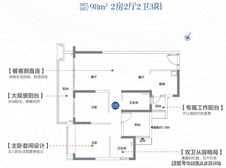 🏡105㎡經典三房N+1戶型,全對流設計,南向觀景暢享約6.9米無界主陽臺,約3.9米闊廳開間,更多的享受,更少付出。