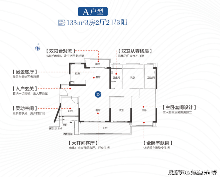 133㎡南北對流高贈送3+1房,兩梯四戶,超大寬廳,高得房率,雙對流陽臺。