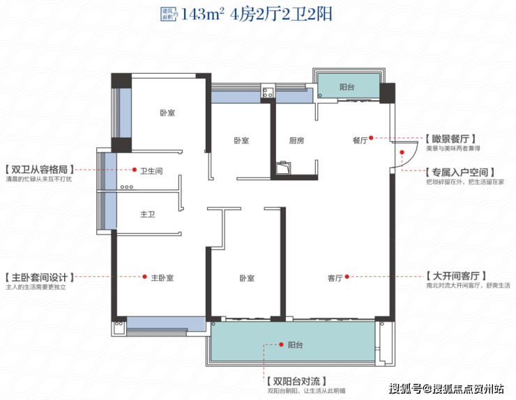 🏡143㎡戶型享受四房,一字樓單位,一梯一戶,單體到戶,約6.9米大陽臺,超寬樓距,奢享品質生活。