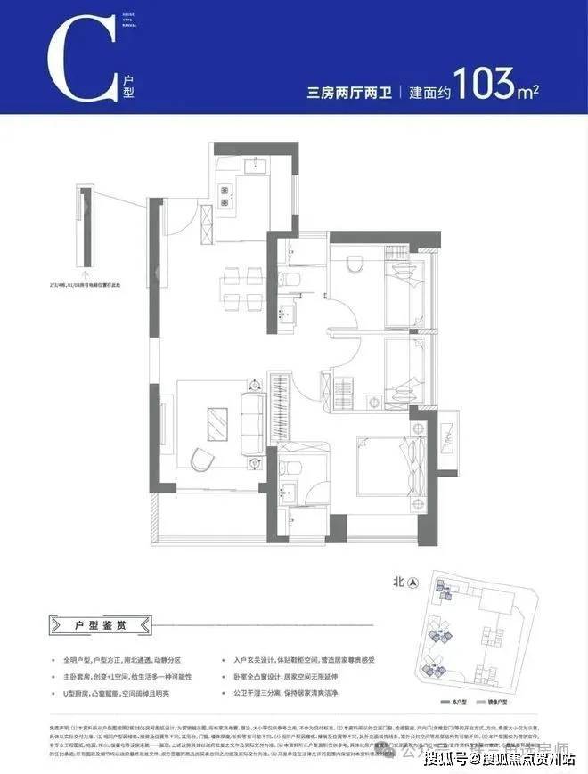 建面约103㎡ 三房两厅两卫 C户型