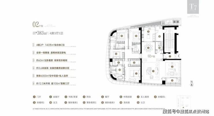 三、T7栋楼王,面积393㎡,4+1房6卫,南北通,全套房板楼设计,备案总价5800万起;