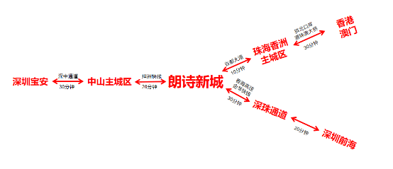 新城规划提速,珠中深度融合,枢纽核心地位凸显,提速珠港澳1小时生活圈,5分钟珠海主城,20分钟中山城区,25分钟抵澳门,40分钟抵港深