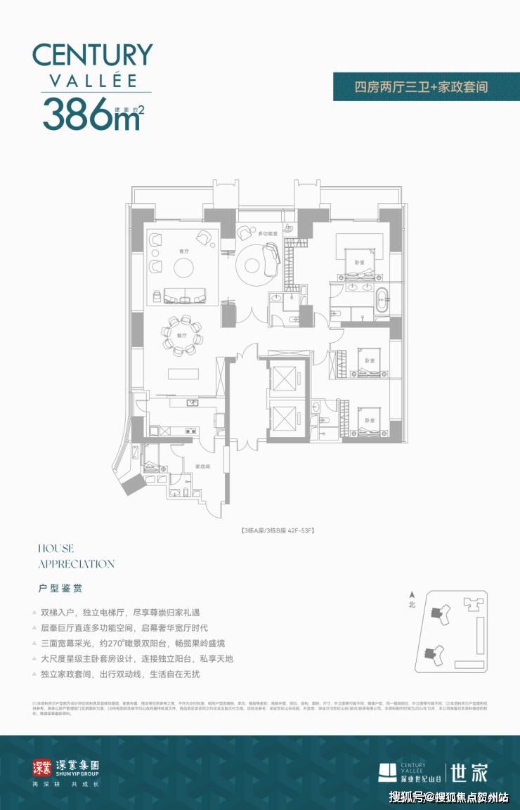 建面约386㎡ 四房两厅三卫+家政套间