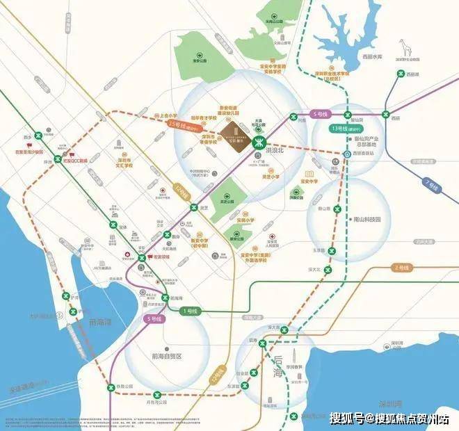 地铁15号线(在建中):起于西乡、终至前海,串联南山西丽、科技园、大铲湾片区,打造前海内环黄金圈。