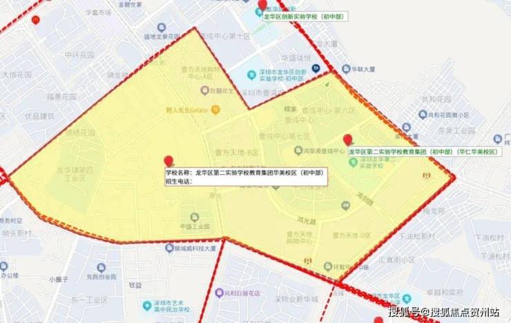 初中学区划分:深圳艺术高中民治学校初中部、龙腾学校北辰校区、龙华高级中学教育集团民治校区初中部、格致中学民治校区初中部、红山中学初中部,还有龙华实验学校初中部的大学区划分。