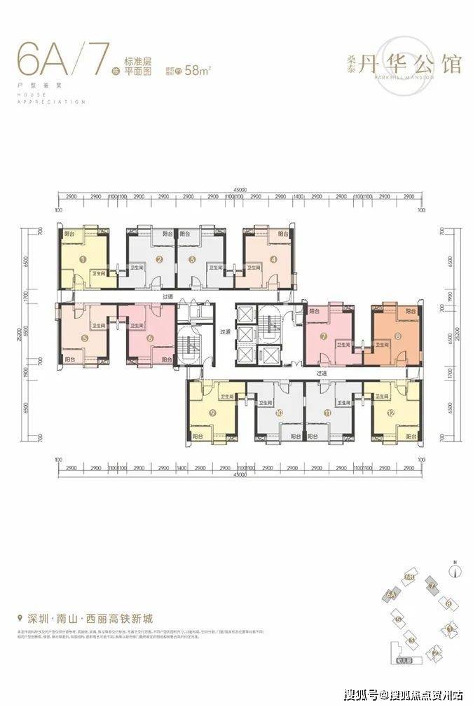 户型主要考虑房间数量,空间和布局合理性等因素(优先考虑面向刚需的小3房户型)。丹华公馆有101平的标准3房,但价格不属于刚需了。所以这里按58平的看,58平做成3室或4室,真是挺让人开眼的。官方说层高3.9米,去掉一些楼层中间的高度,估计有效层高还得少一些,可能只有3.7米多,做成复式,还是比较让人难以接受的。一般正常的复式要达到5米。那3.7米给下面2米2的话,上面最多1米5。很难称为一个房间,说是上铺可能更合适。