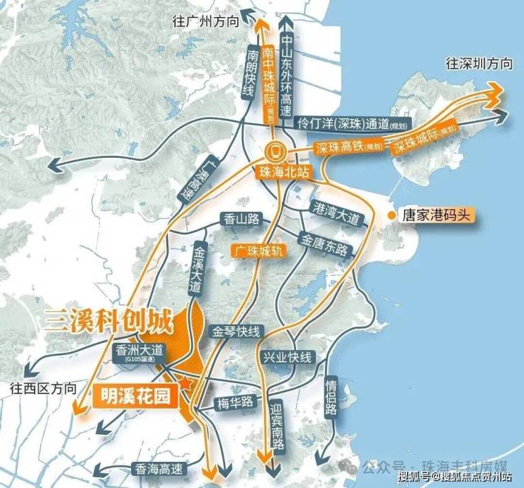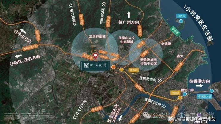 🌉项目距离明珠城轨站8分钟车程,15分钟可达港珠澳大桥高速入口,直达港澳、广深;