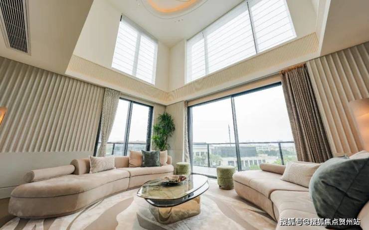 二是客厅约6.8米中空挑高,将通透性优势发挥到极致。