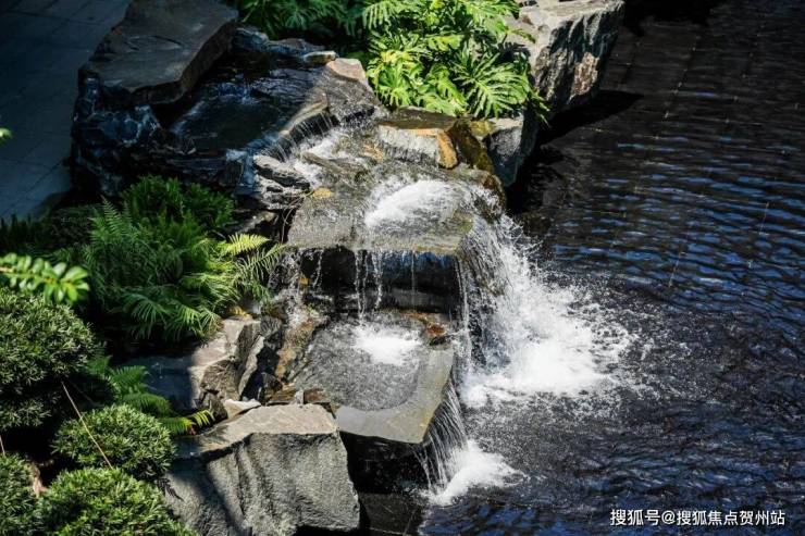 步入其中,映入眼帘的则是新中式建筑,再搭配上水景,尽显雅致大气,给业主呈现出高品质交付环境。