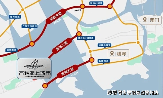 紧邻建设中金海大桥,建成后 1 桥通横琴,经洪鹤大桥可快速抵达香洲、澳门,通过港珠澳大桥能便捷前往香港。周边有机场高速、江珠高速等路网,500 米内有 201 路、504 路等公交站点,距珠机城轨约 1.5 公里,出行高效,融入大湾区一小时生活圈。