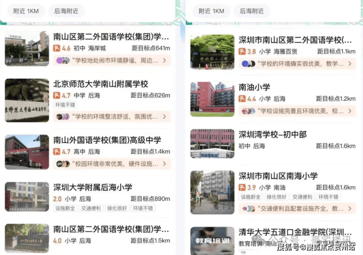 项目周边有北师大附小,南山外国语学府学校,南二外学府中心南油小学,深圳大学附属后海学校,北师范大学附中,深圳湾学校等
