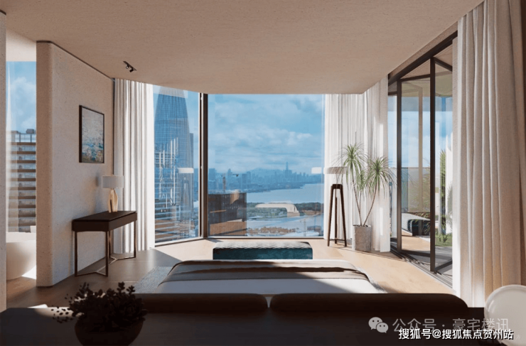 超高层观景面采用落地玻璃,深圳湾视野开阔,无需阳台即可观赏海景。