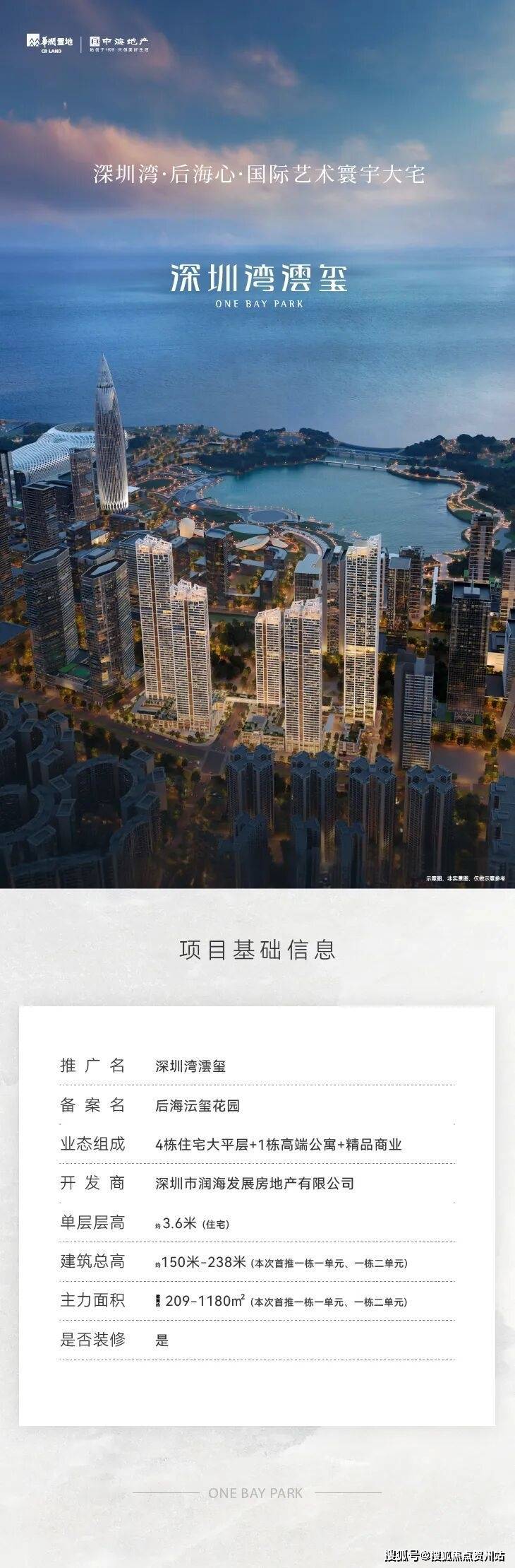项目地处深圳后海金融商务总部基地,与深圳湾壹号相距仅约400米。作为该片区最后一块含住宅的用地,其土地的稀缺性奠定了项目的高端定位。