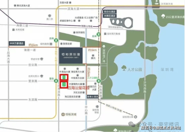 周边地标如深圳湾体育中心、万象城、春笋等,产业和景观价值在深圳领先。