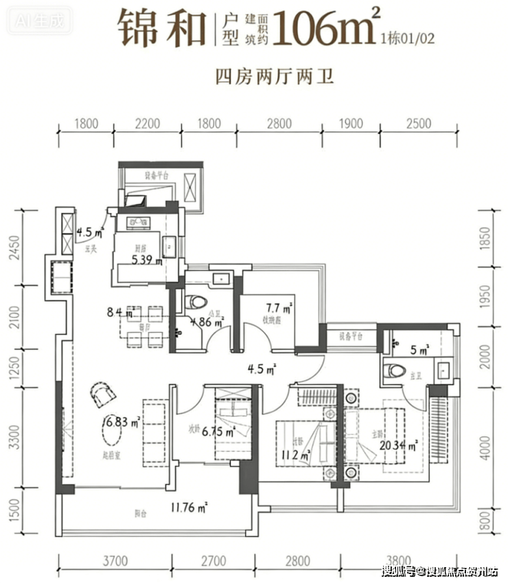 104-107㎡4 房 2 厅 2 卫