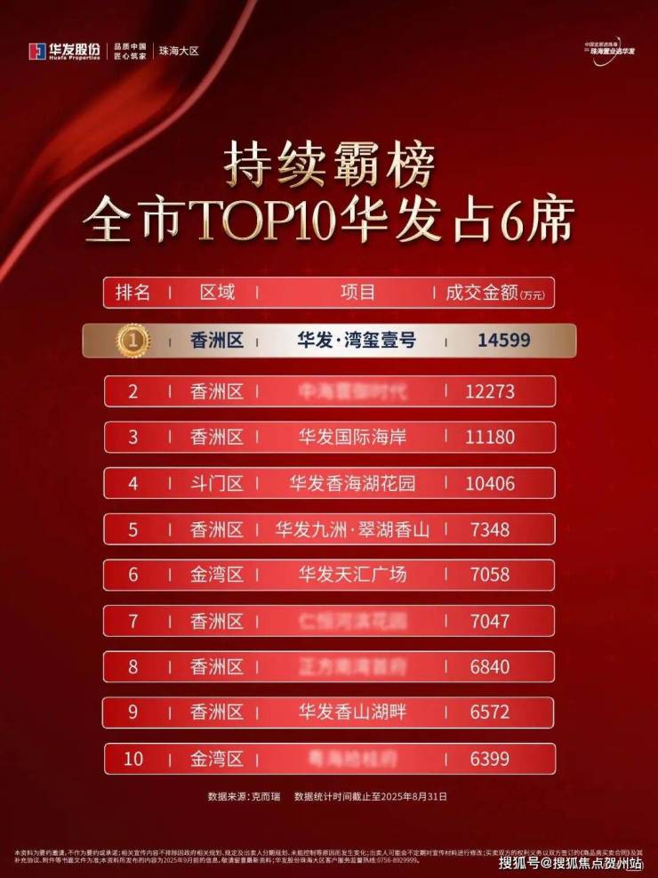 华发再次斩获珠海成交金额榜首!全市TOP10中华发占据6席,据克而瑞数据显示,华发2025年成交金额、套数、面积已连续8个月位居珠海TOP1,用实打实的业绩印证“龙头效应”。