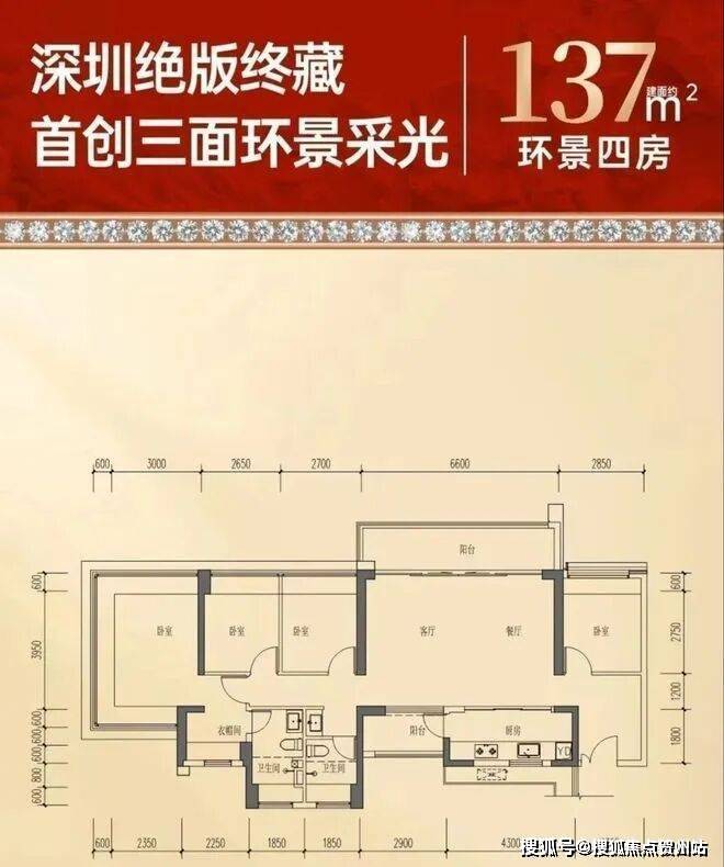 约137㎡绝版通透大四房!优势:珈誉大城绝版四房户型,仅86席限量加推,私享入户空间,大横厅双阳台南北通通,空间可设计性强,约93%超高使用率!