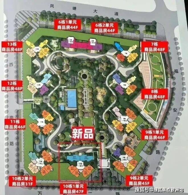【总层高】31-48层,其中6栋1/2单元住宅44F,7栋/8栋住宅48F,9栋1单元住宅46F,9栋2单元住宅45F,10栋1单元住宅47F,10栋2单元住宅31F,11栋住宅46F,12栋/13栋住宅48F。