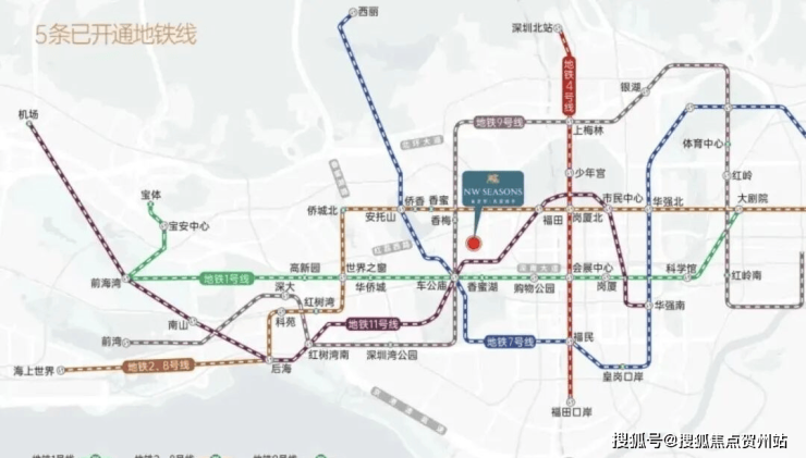 地铁:项目最近的地铁站是9号线香梅站和1号线香蜜湖站;1站车公庙,2站福田中心,3站后海深圳湾;距离9号线香梅站300米。
