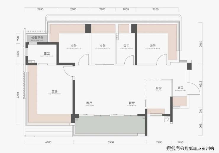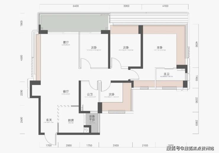 主卧套房+次卧类套房设计,提升家庭各成员居住尊严。