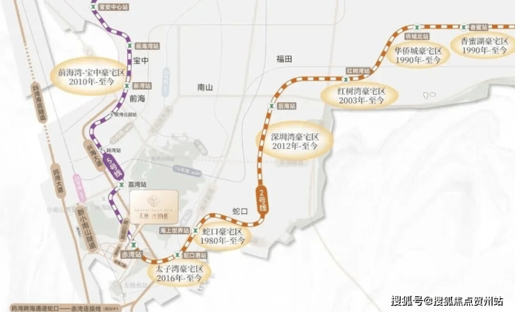 项目紧邻赤湾站约400米,这是2号线与5号线的交汇站,通过此站可以便捷地到达前海、宝中、蛇口以及深圳湾等深圳核心区域。项目2公里范围内还有正在建设的12号线左炮台站,并且规划有未来的地铁28号线。此外,项目通过小南山隧道或港航路可以快速连接到兴海大道,从而连通前海、后海、宝中等重要区域,交通条件十分便利。