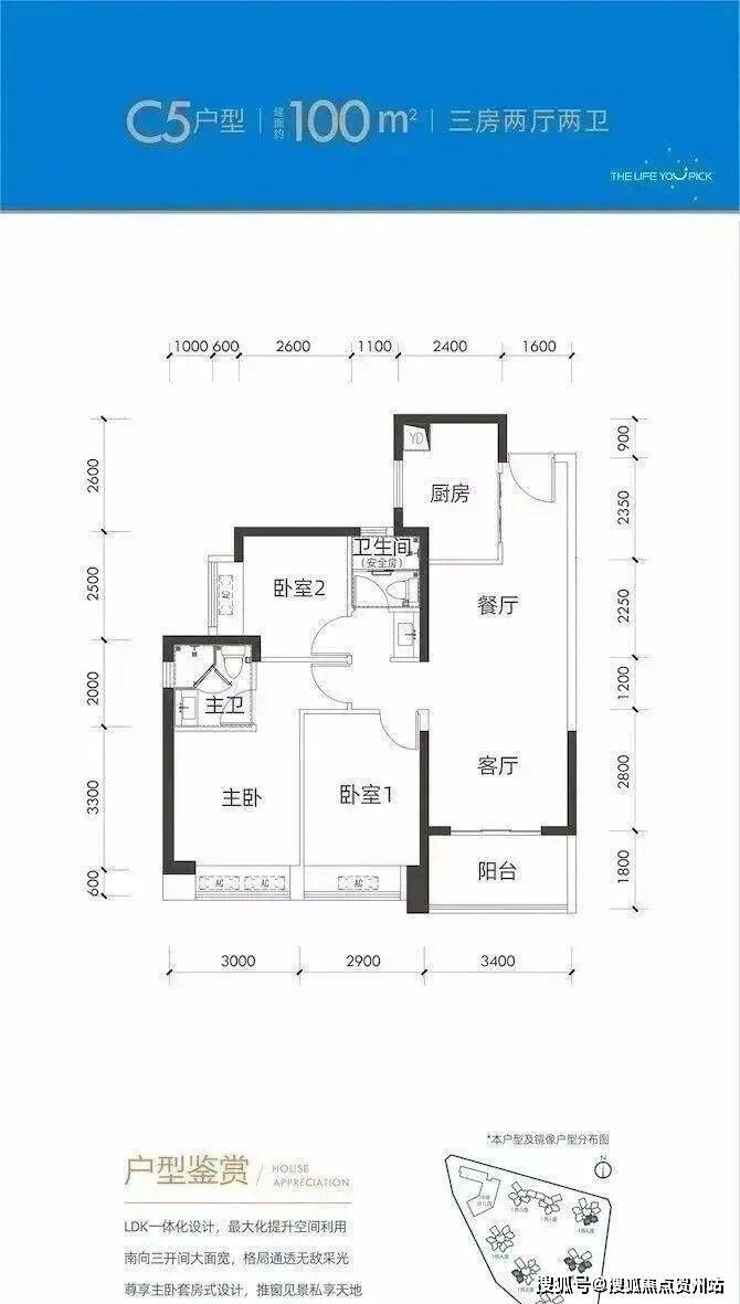 100㎡的3房2厅2卫,折后总价355万,单价3.55万/㎡。